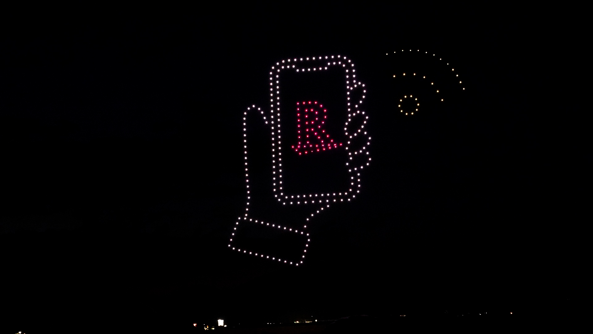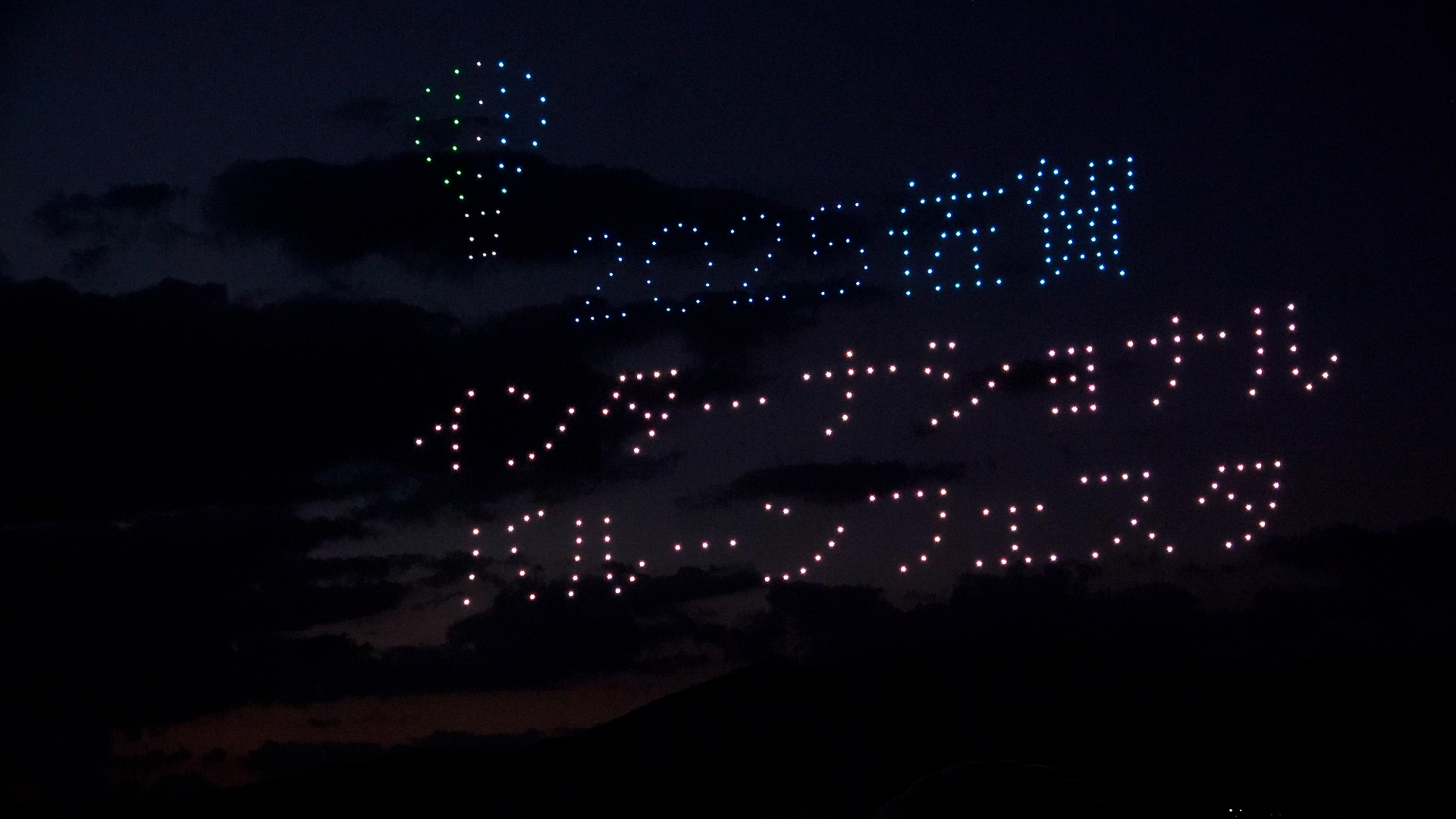 『楽天モバイルドローンショー』完全オリジナルデザインにて開催されたドローンショーは、LEDを搭載した300機のドローンを使用し、佐賀県の夜空を色鮮やかに彩ります。是非「楽天モバイルドローンショー」をお楽しみください。