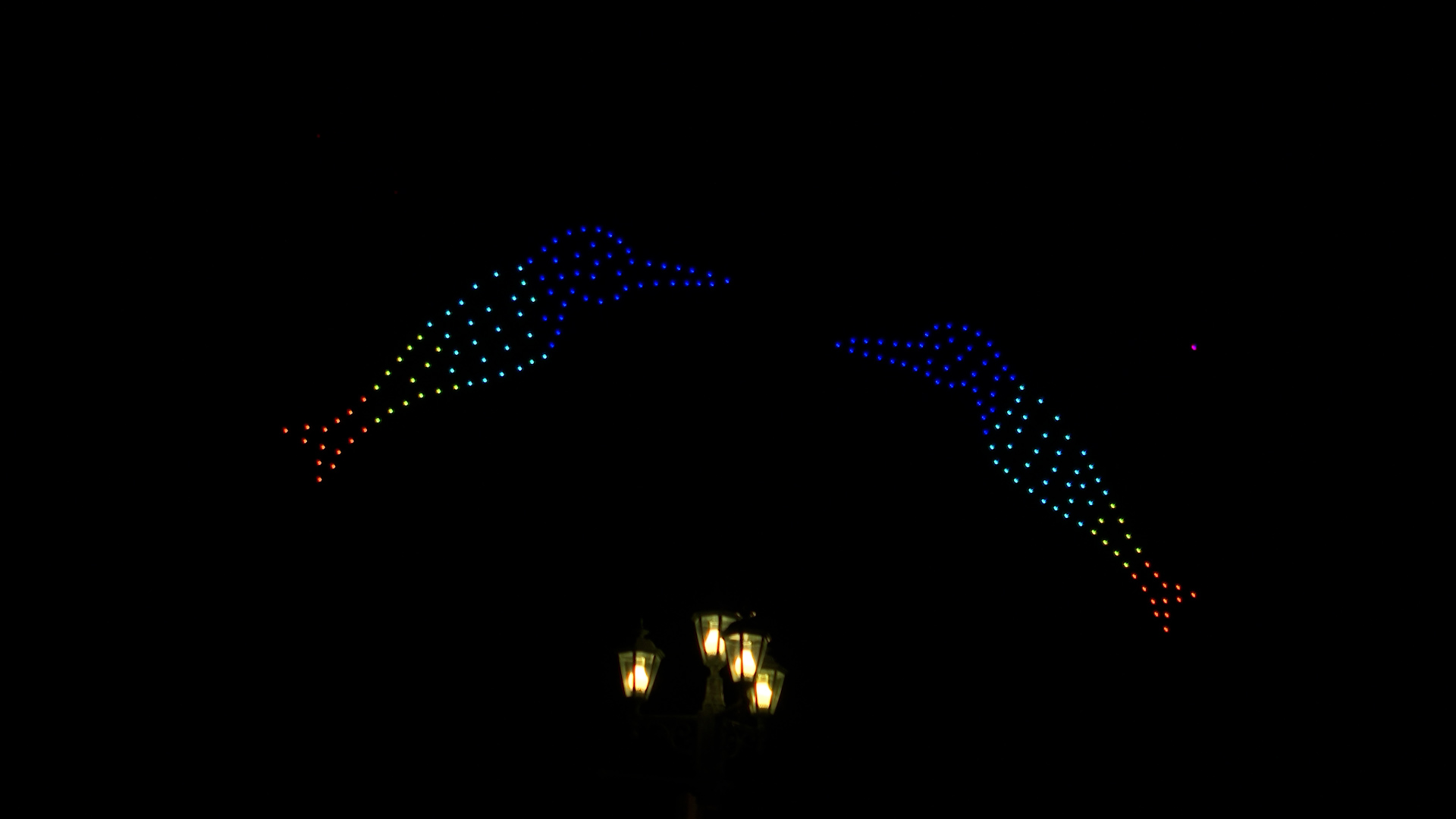 このドローンショーは、沖縄の魅力と最先端技術の融合により、地域の皆様や沖縄県北谷町に訪れた皆様に特別な体験をお届けすることを目指しています。アメリカンビレッジの夜空を舞台に、300機のドローンが描く光の物語をぜひお楽しみください!!